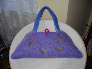 ...a bright pink wool dread (which I anchored into the purse during felting), and a punch-cut wool flower.